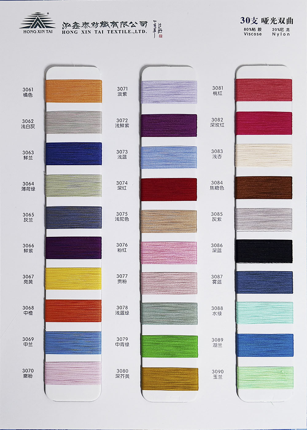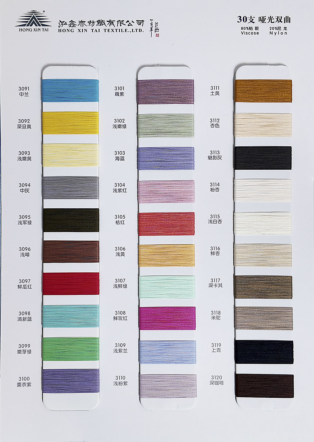 (24支/63%粘胶Viscose 37%尼龙Nylon)(30支/80%粘胶Viscose 20%尼龙Nylon)(43支/79%粘胶Viscose 21%锦纶Nylon )