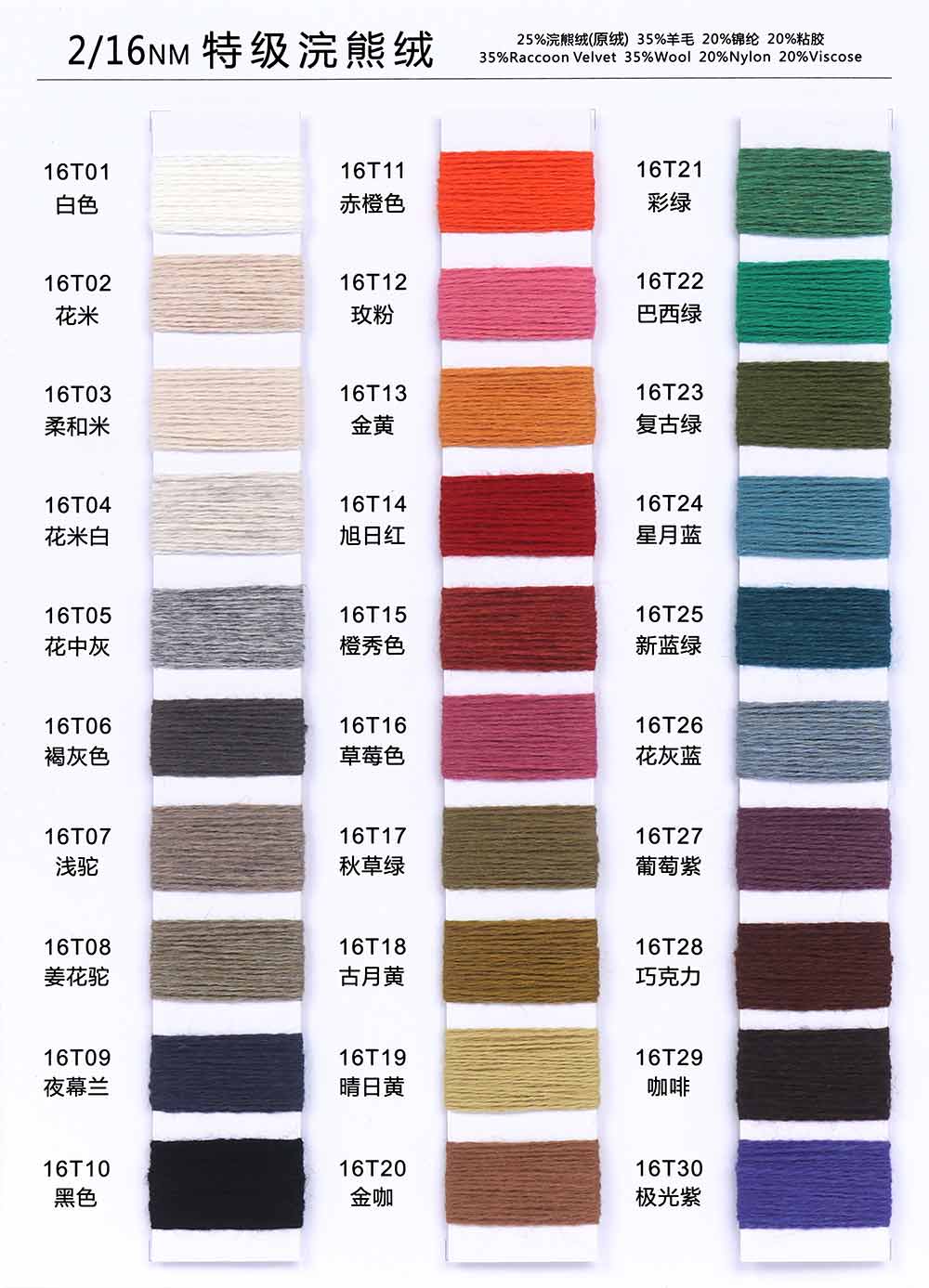 25%浣熊绒(原绒)Raccoon velvet 35%羊毛Wool 20%锦纶Nylon 20%粘胶Viscose