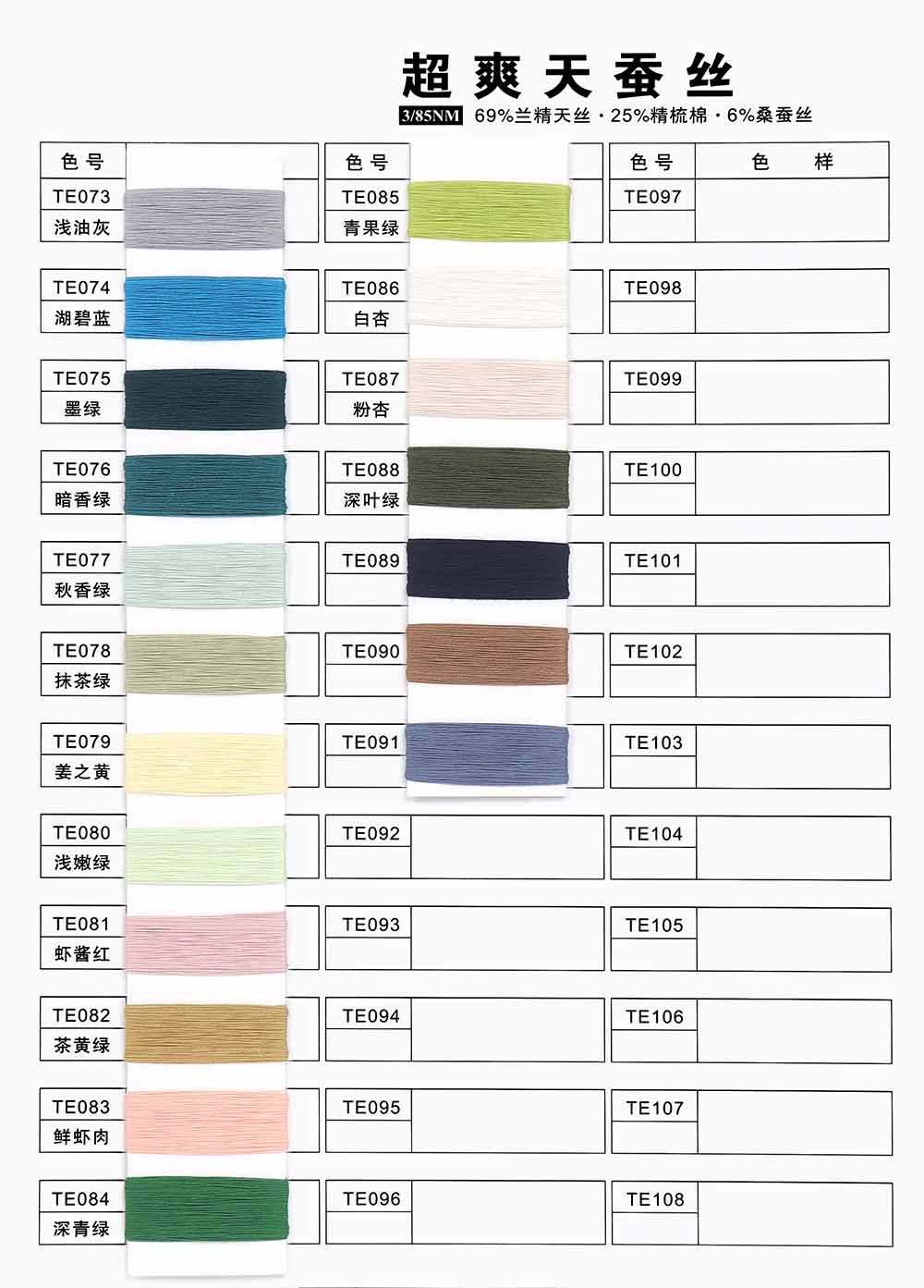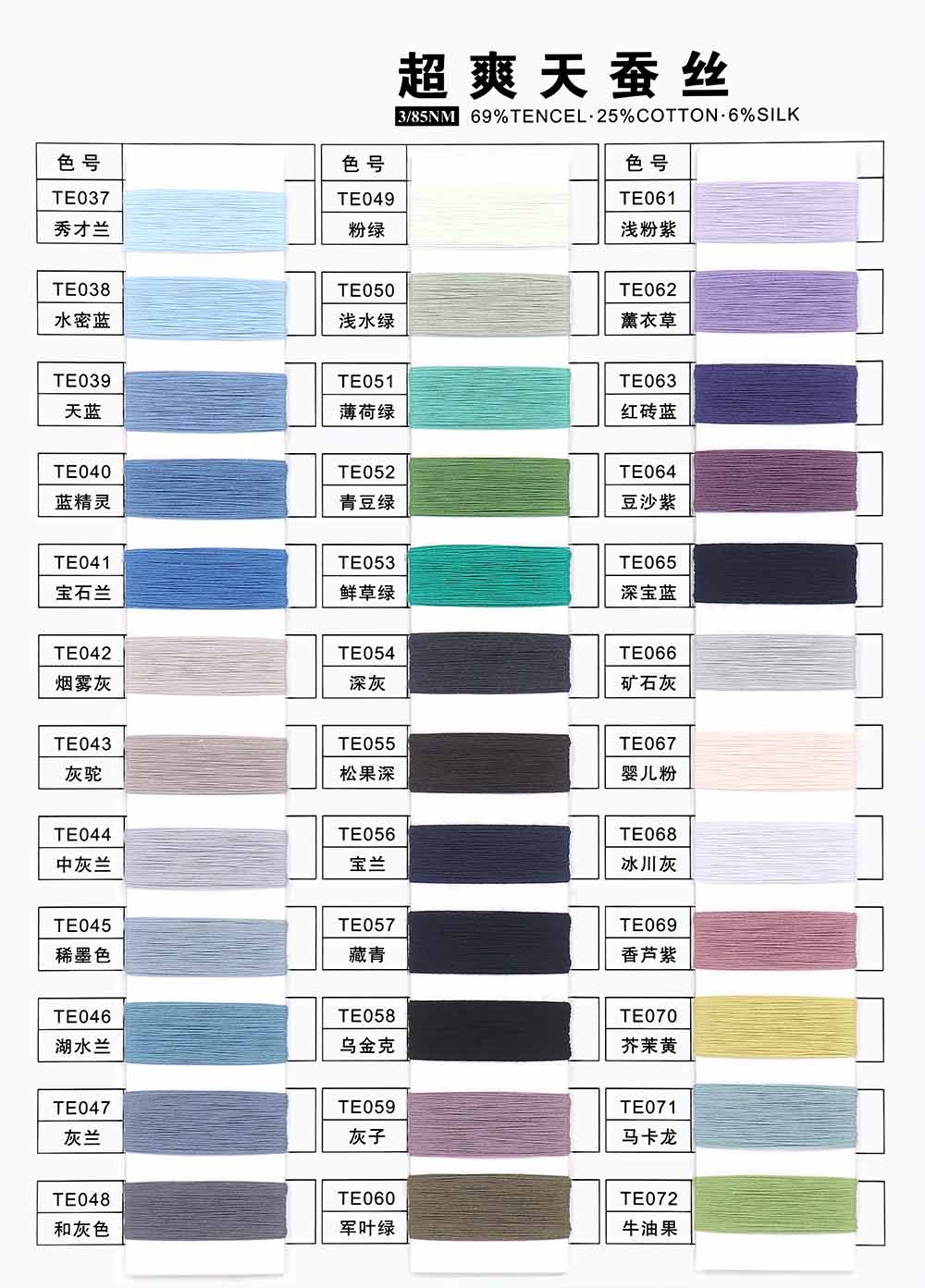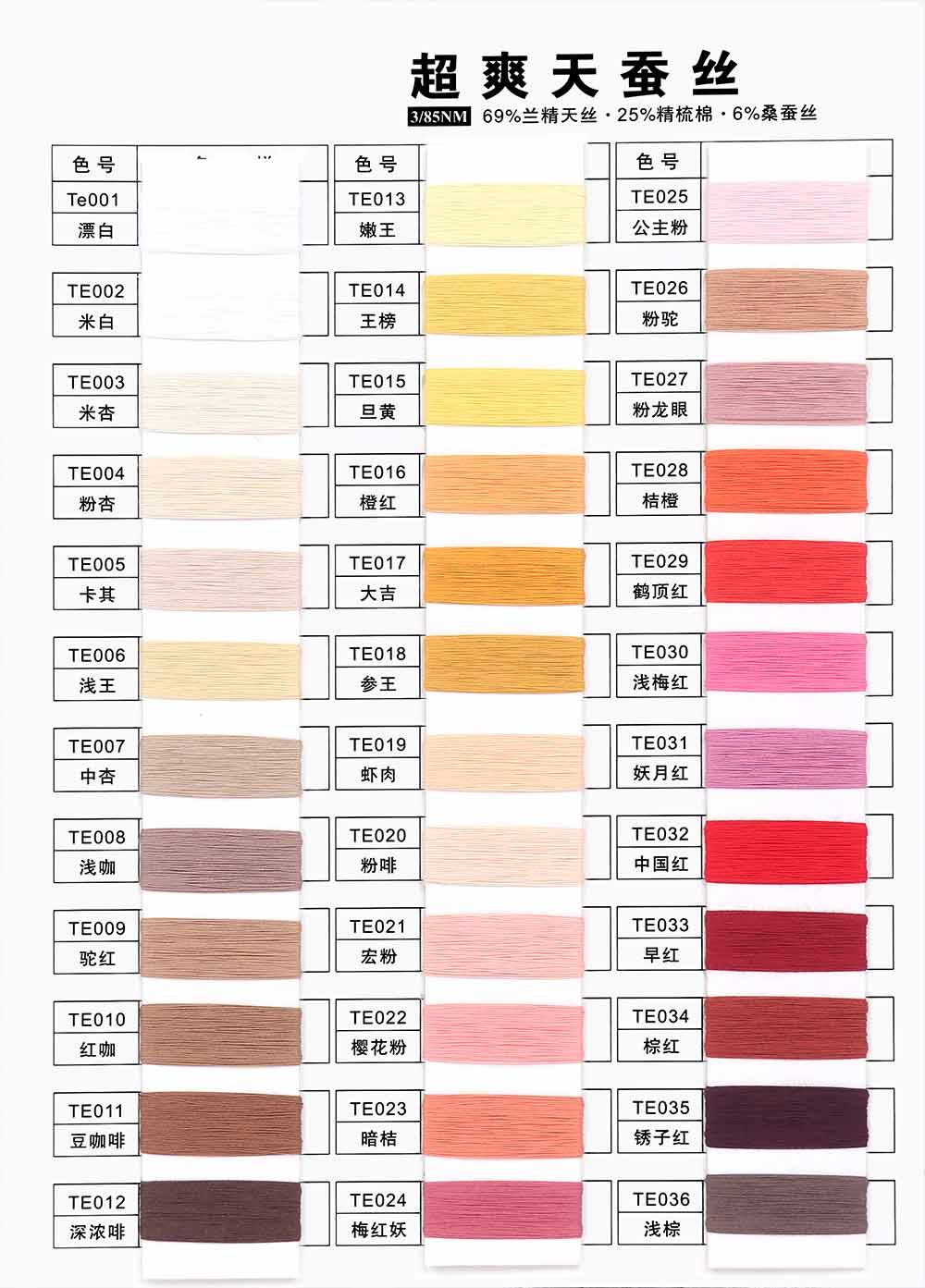 69%兰精天丝Tencel 25%精梳棉Combed cotton 6%桑蚕丝Mulberry silk