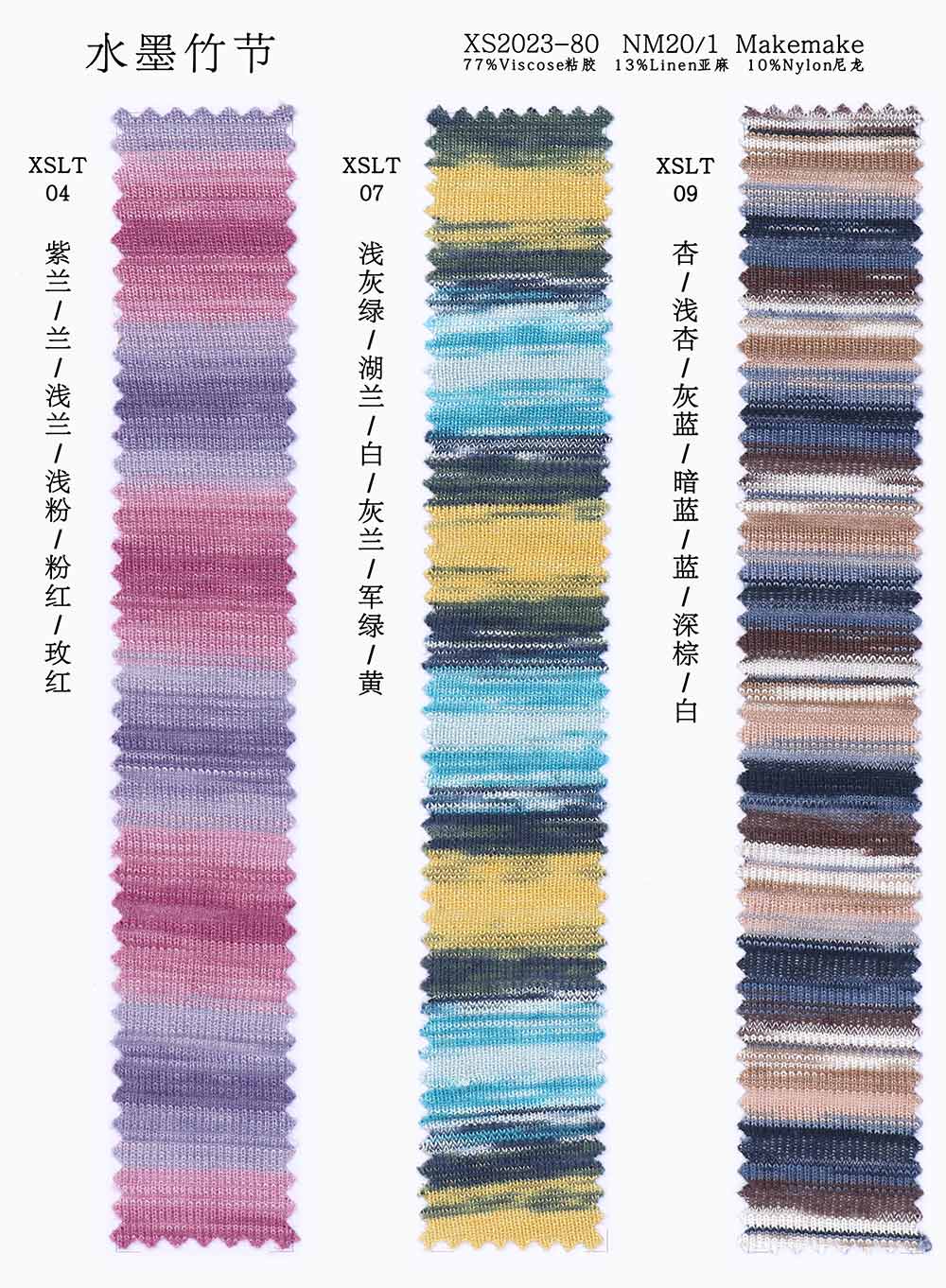 77%粘胶Viscose 13%亚麻Linen 10%尼龙Nylon