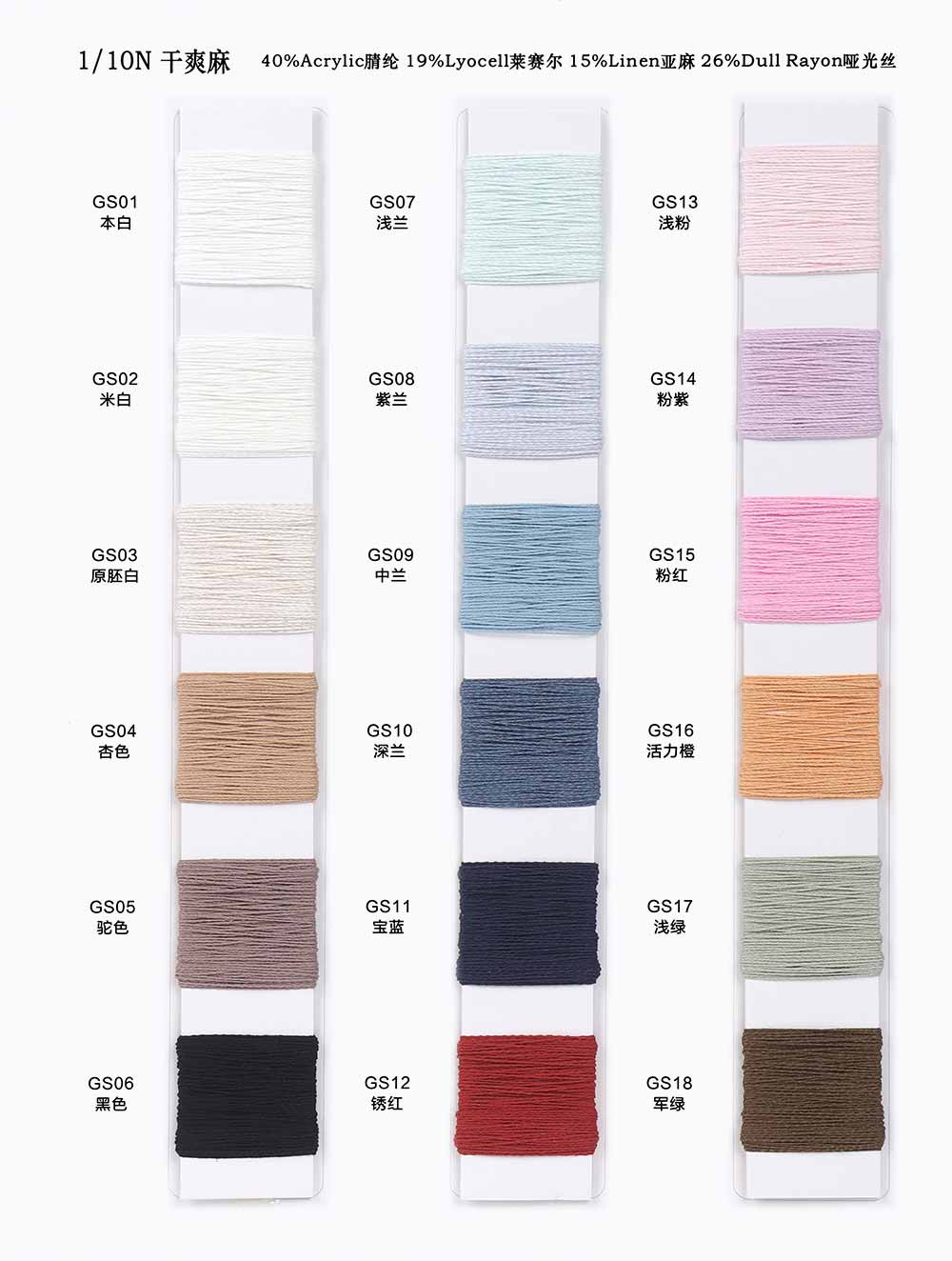 40%腈纶Acrylic 19%莱赛尔Lyocell 15%亚麻Linen 26%哑光丝Dull Rayon