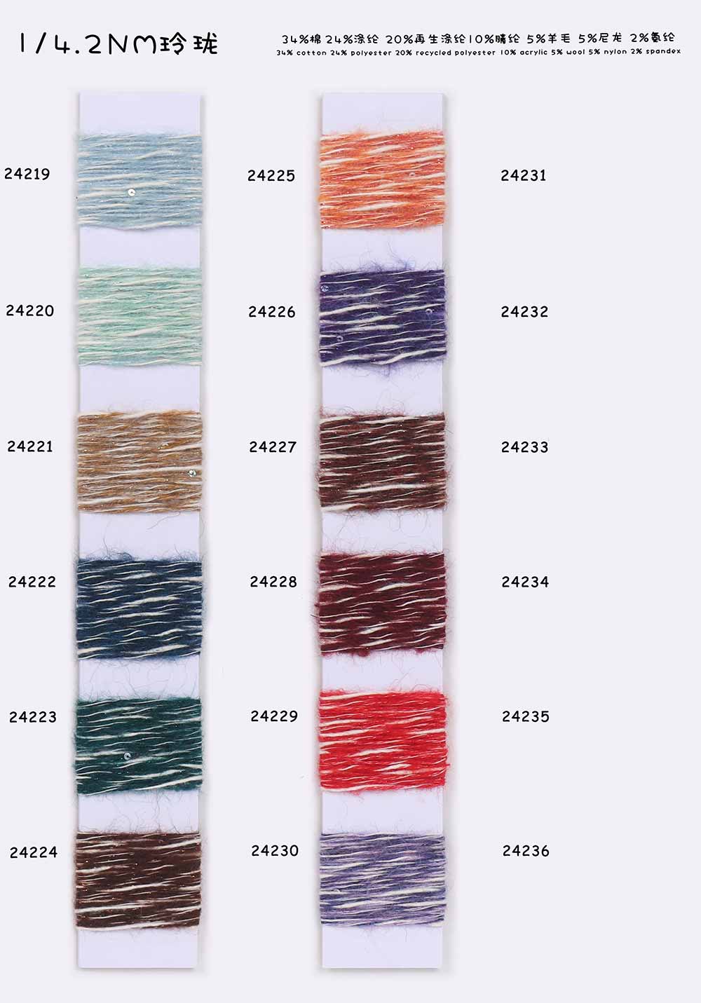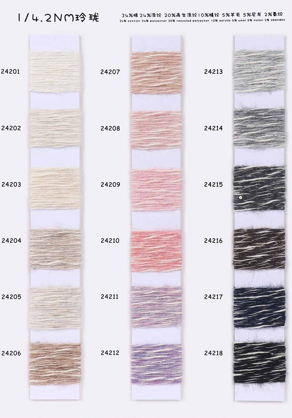 34%棉Cotton 24%涤纶Polyester 20%再生涤纶Rec Polyester 10%腈纶Acrylic 5%羊毛Wool 5%尼龙Nylon 2%氨纶Spandex