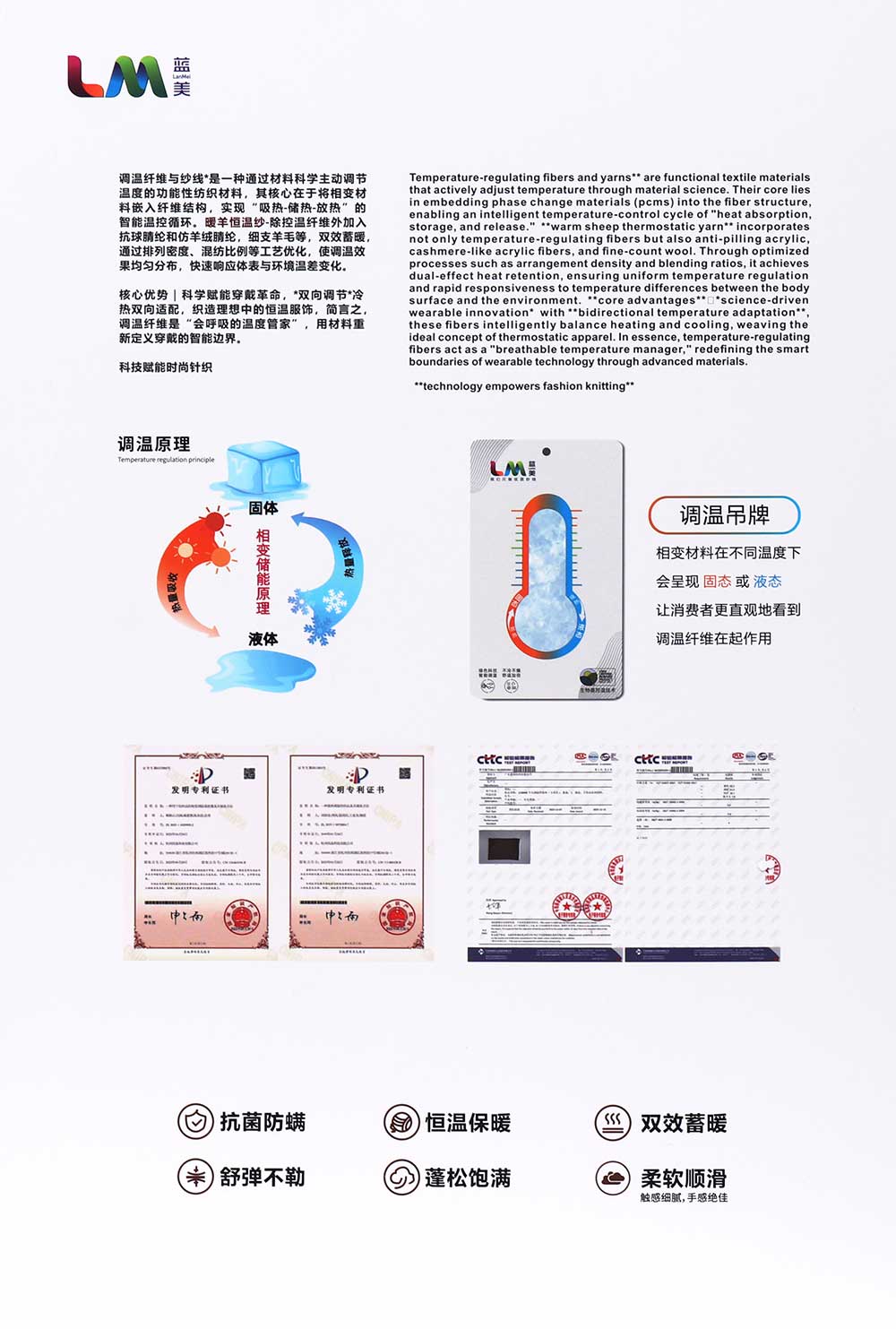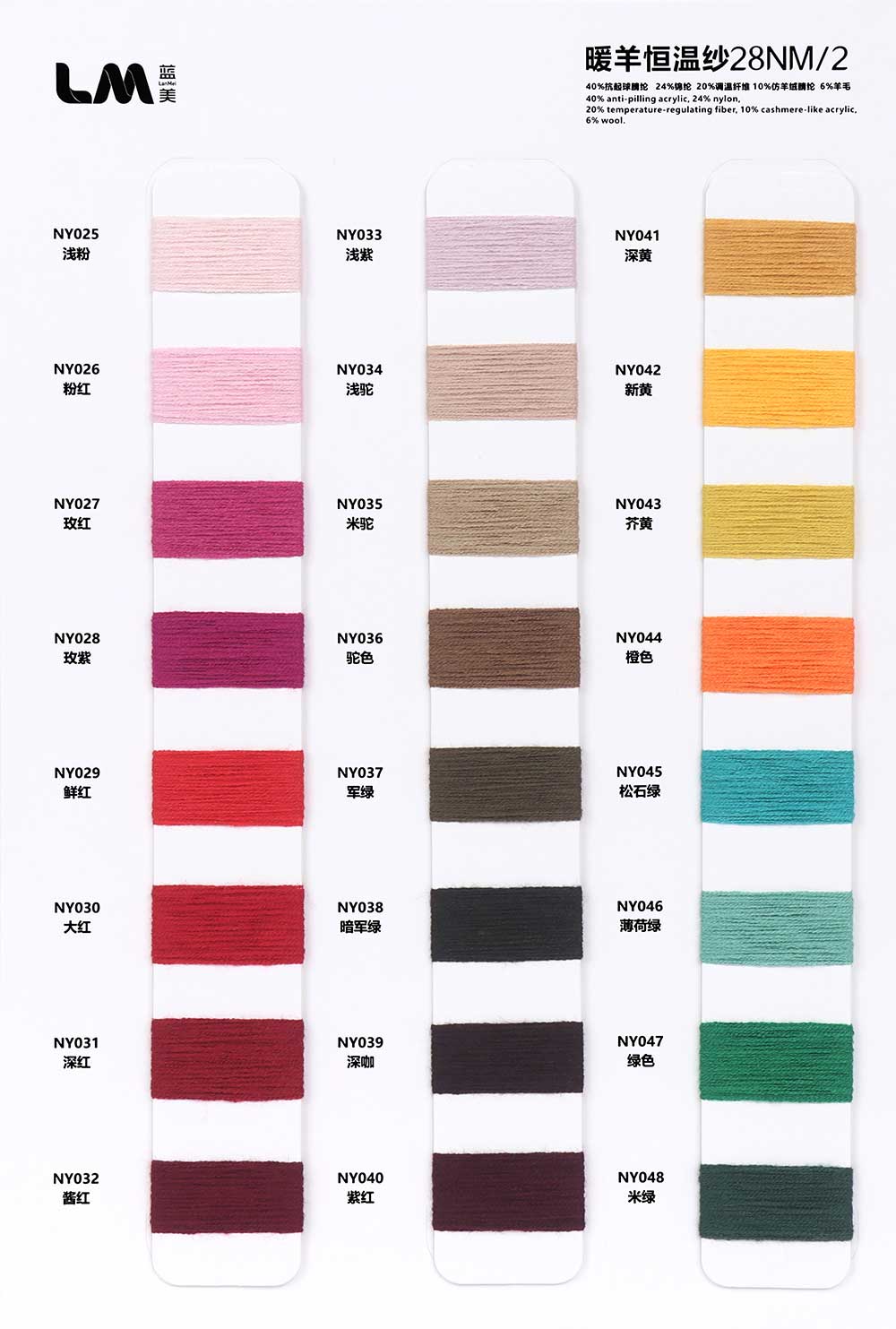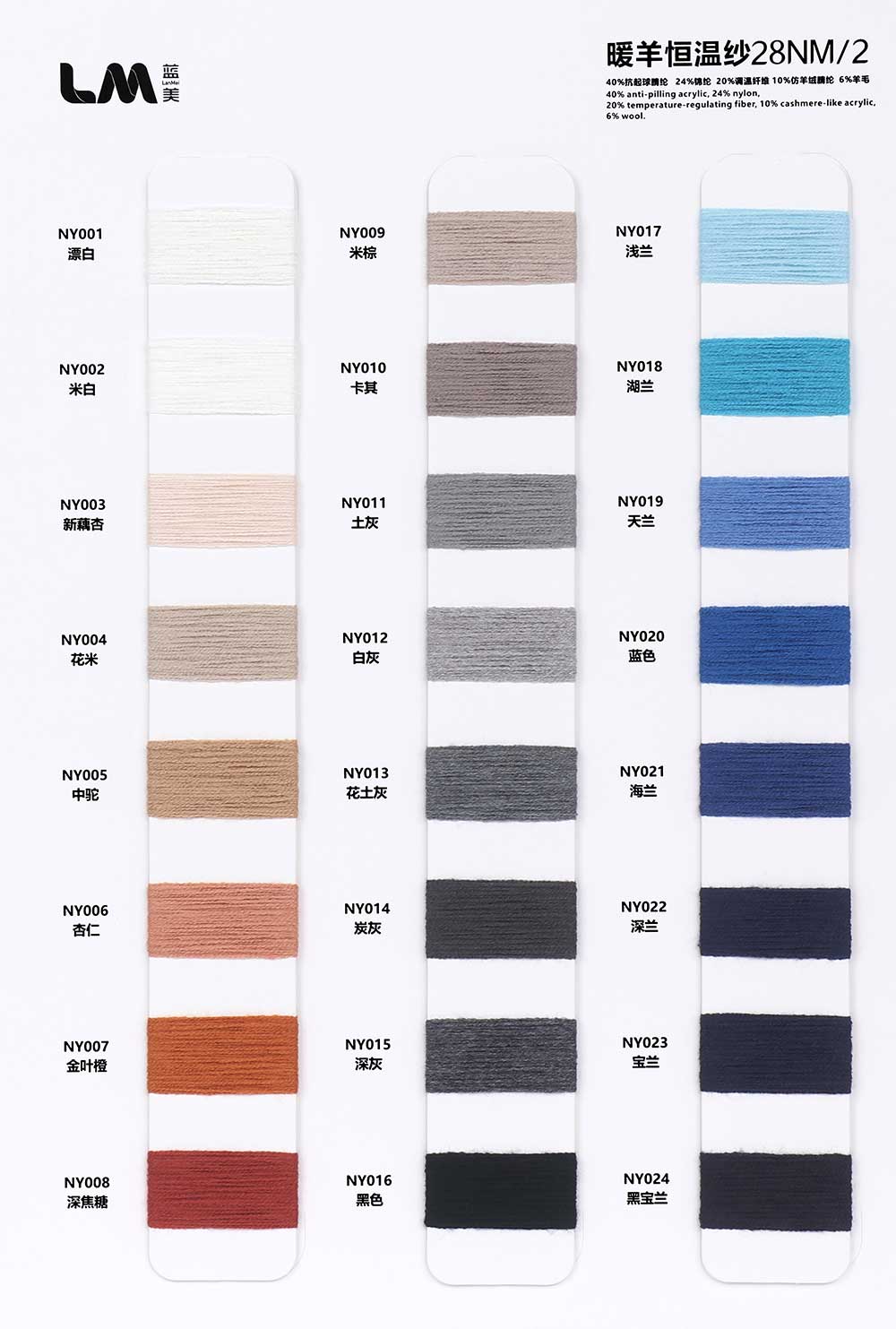 40%抗起球腈纶Anti-pilling Acrylic 24%锦纶Nylon 20%调温纤维Temperature-regulating fiber 10%仿羊绒腈纶Cashmere-like Acrylic 6%羊毛Wool