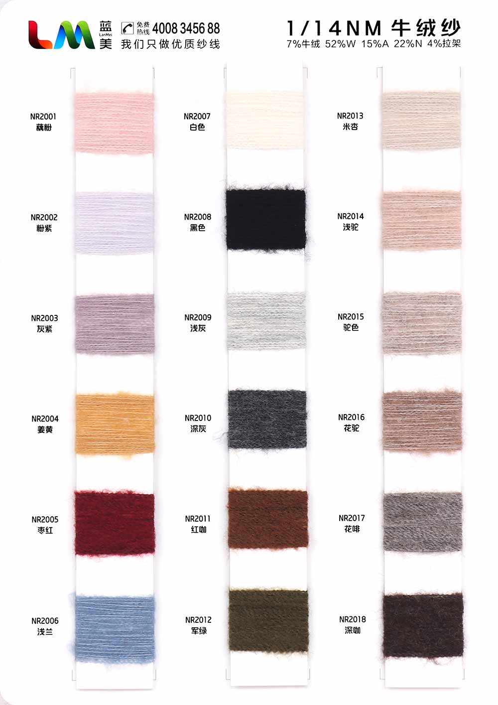 7%牛绒YAK 52%羊毛Wool 15%腈纶Acrylic 22%尼龙Nylon 4%拉架Spandex