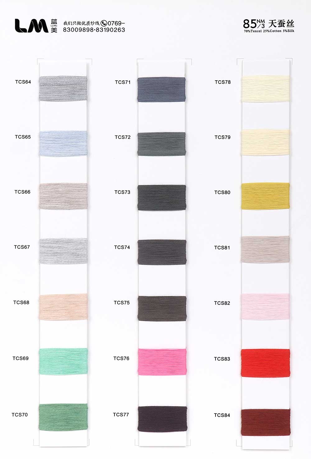 70%天丝Tencel 25%棉Cotton 5%蚕丝Silk
