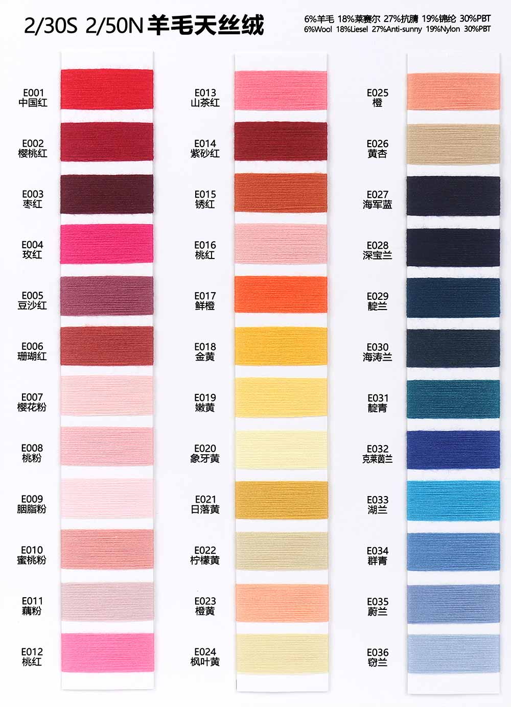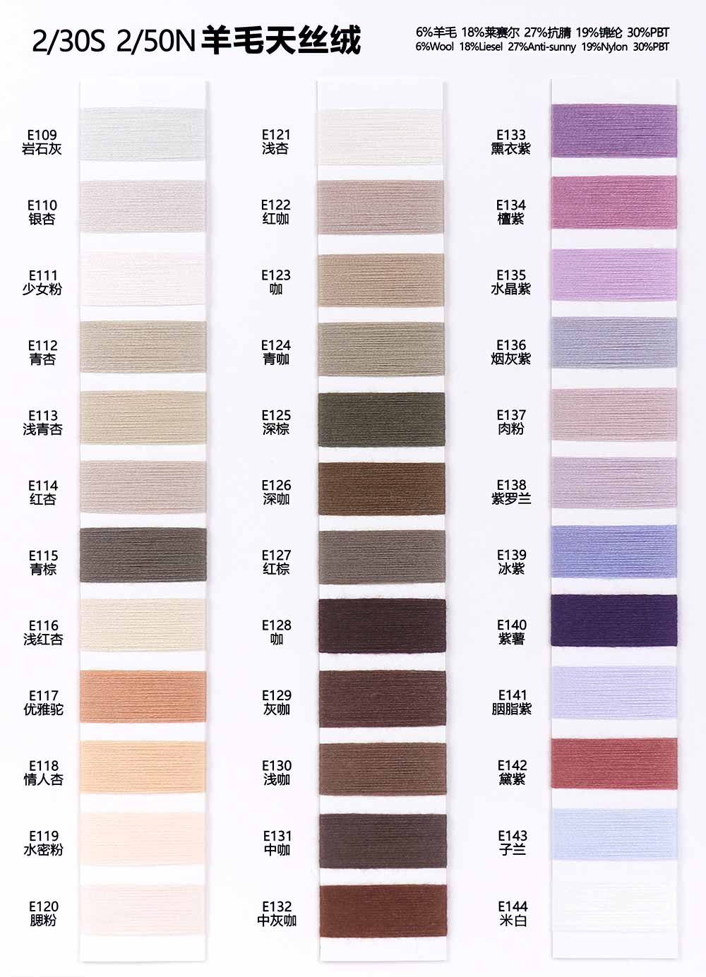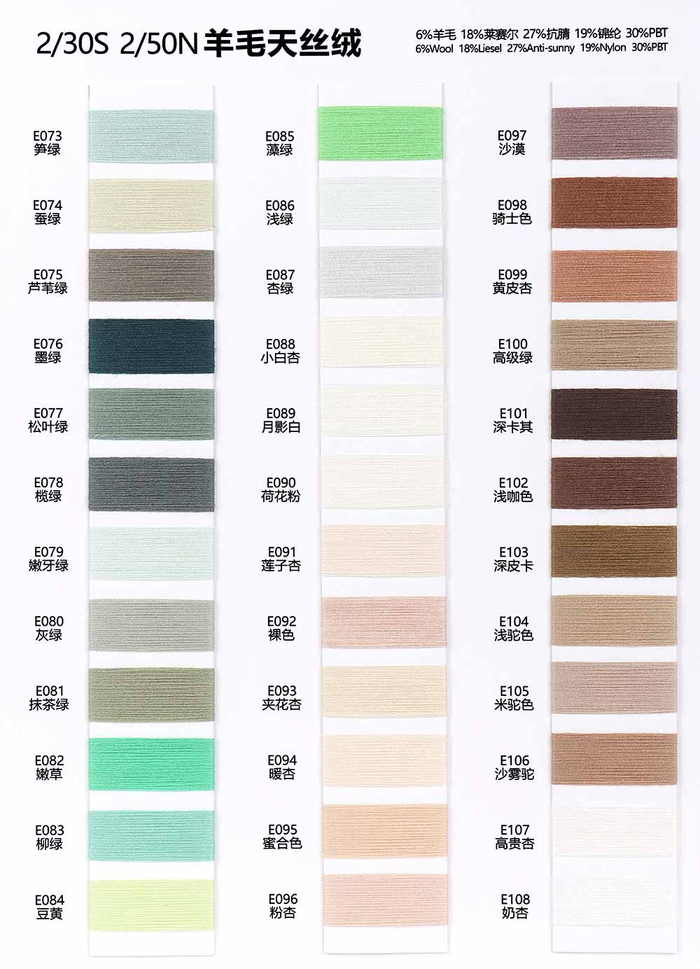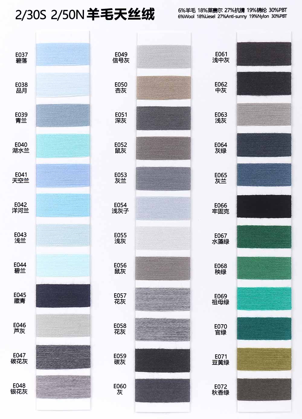 6%羊毛Wool 18%莱赛尔Lyocell 27%抗腈Anti pilling Acrylic 19%锦纶Nylon 30%涤纶PBT