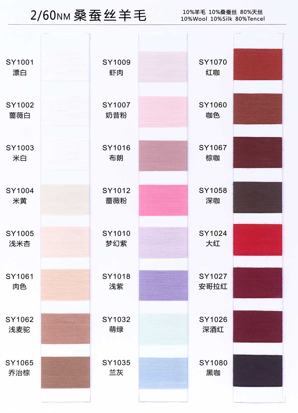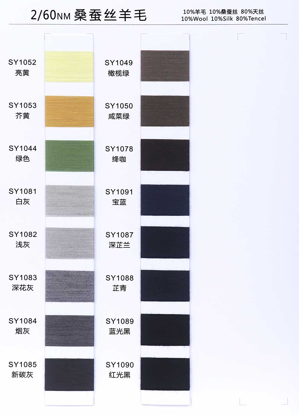10%羊毛Wool 10%桑蚕丝Silk 80%天丝Tencel