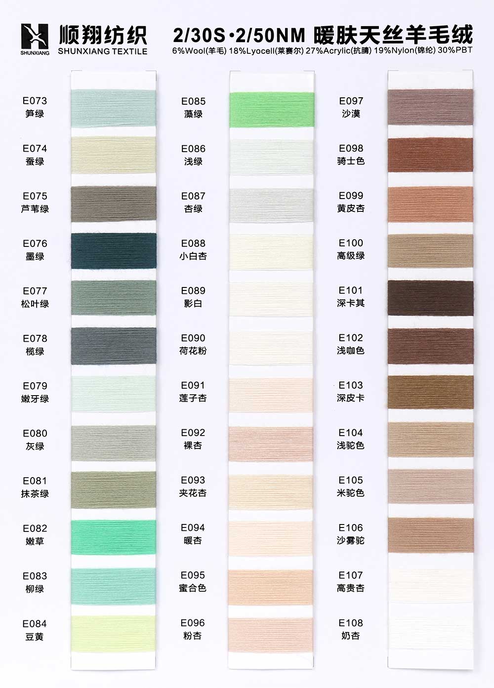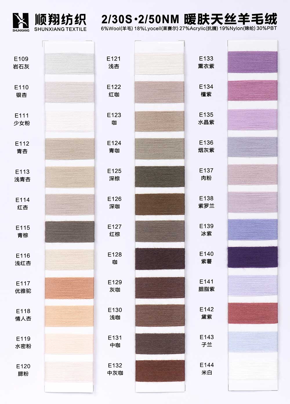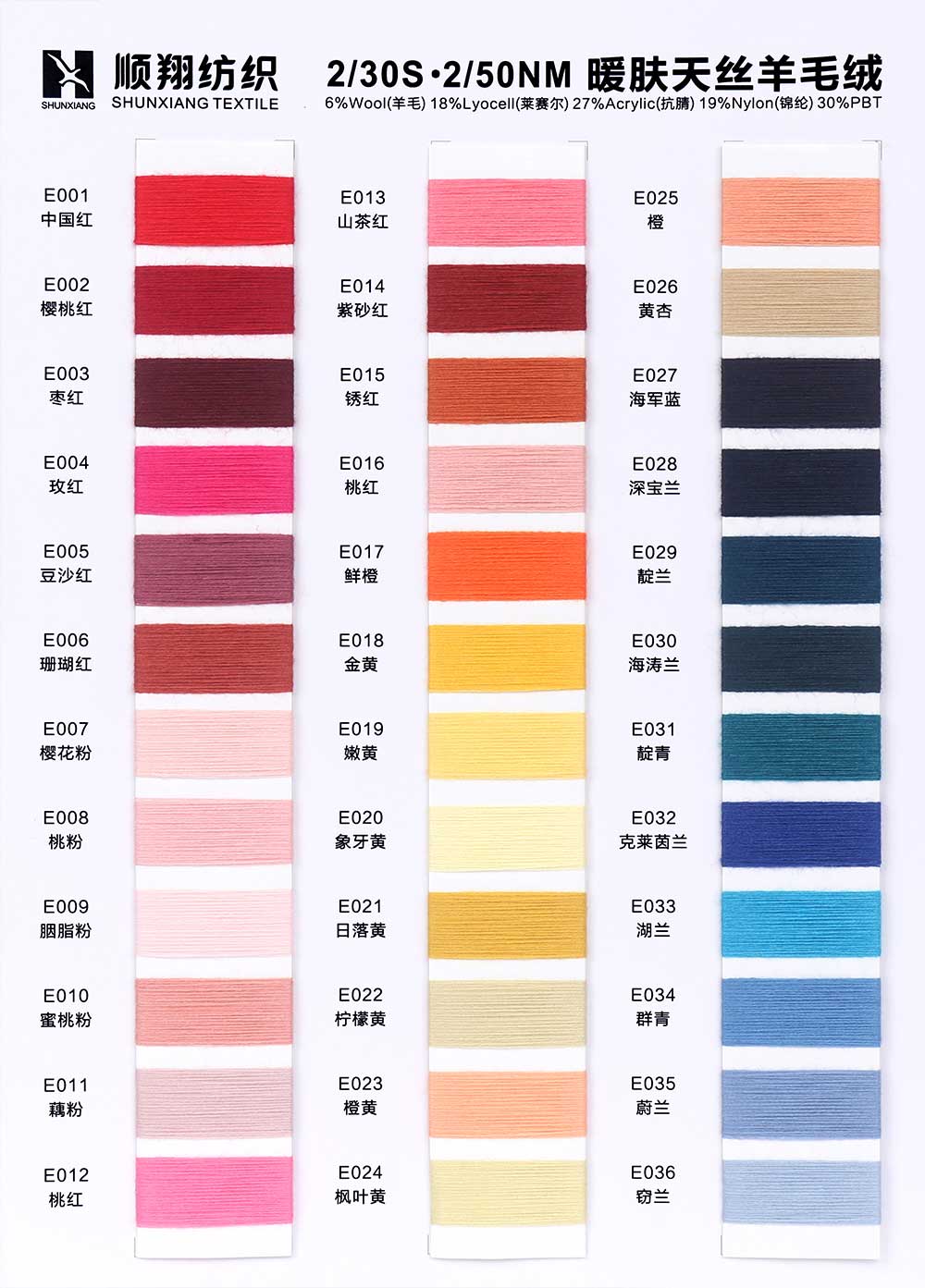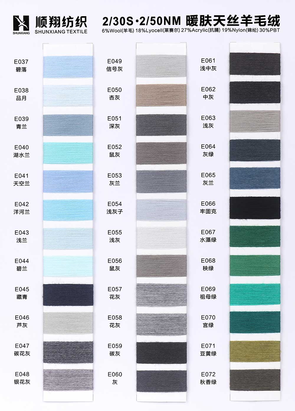 6%羊毛Wool 18%莱赛尔Lyocell 27%抗腈Anti-pilling Acrylic 19%锦纶Nylon 30%涤纶PBT