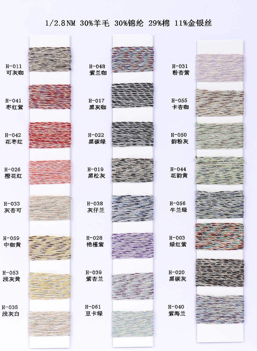 30%羊毛Wool 30%锦纶Nylon 29%棉Cotton 11%金银丝Metallic