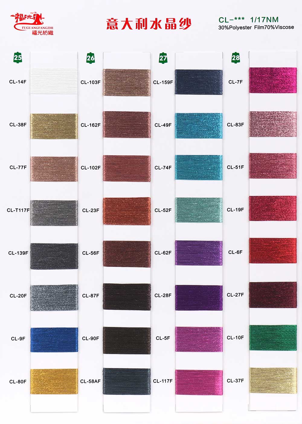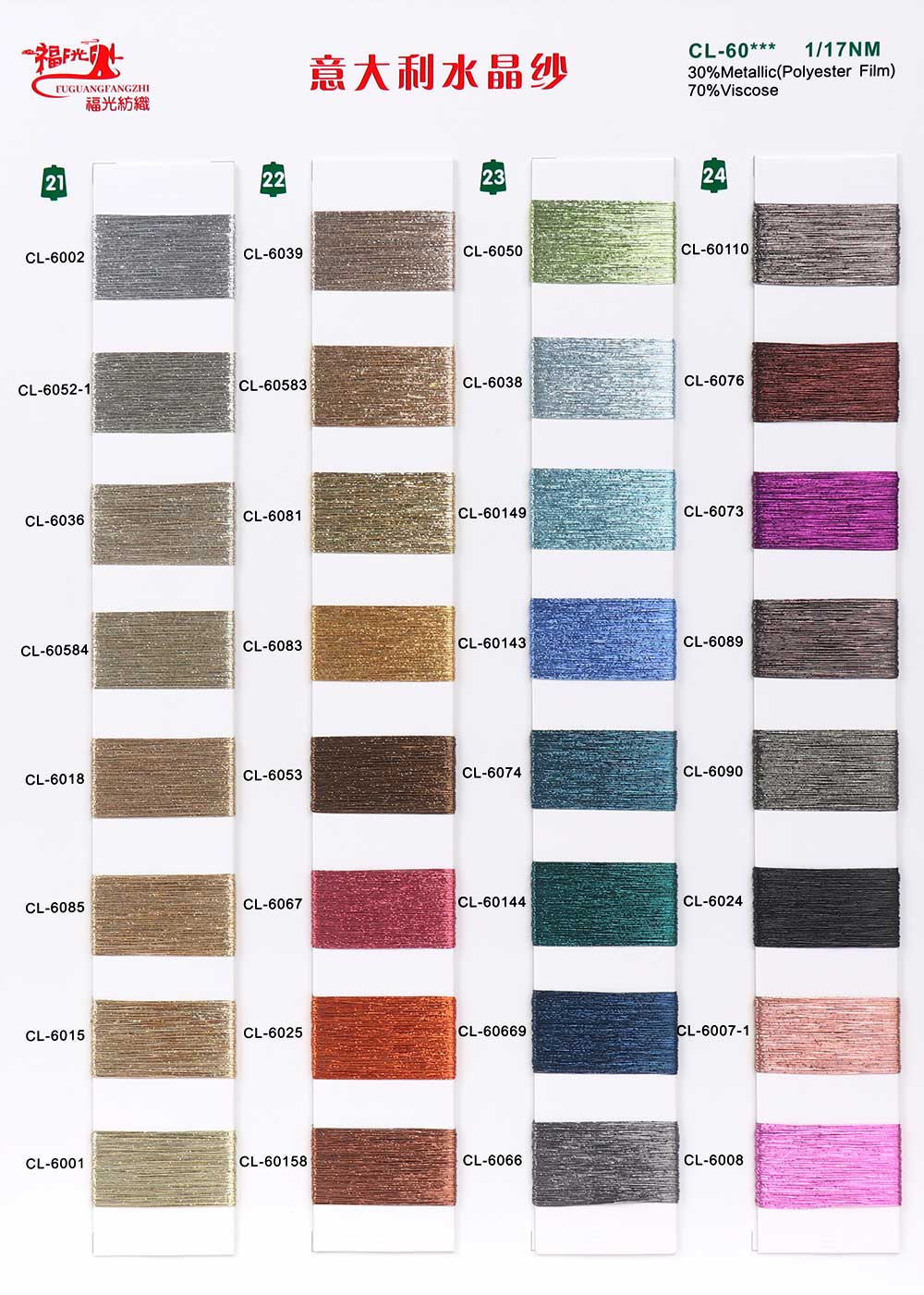 CL-60***1/17NM-30%金属丝Metallic(Polyester Film) 70%粘胶Viscose