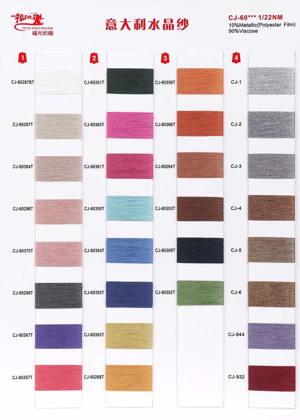 CJ-60***1/22NM-10%金属丝Metallic(Polyester Film) 90%粘胶Viscose