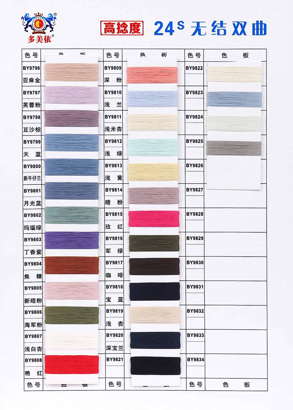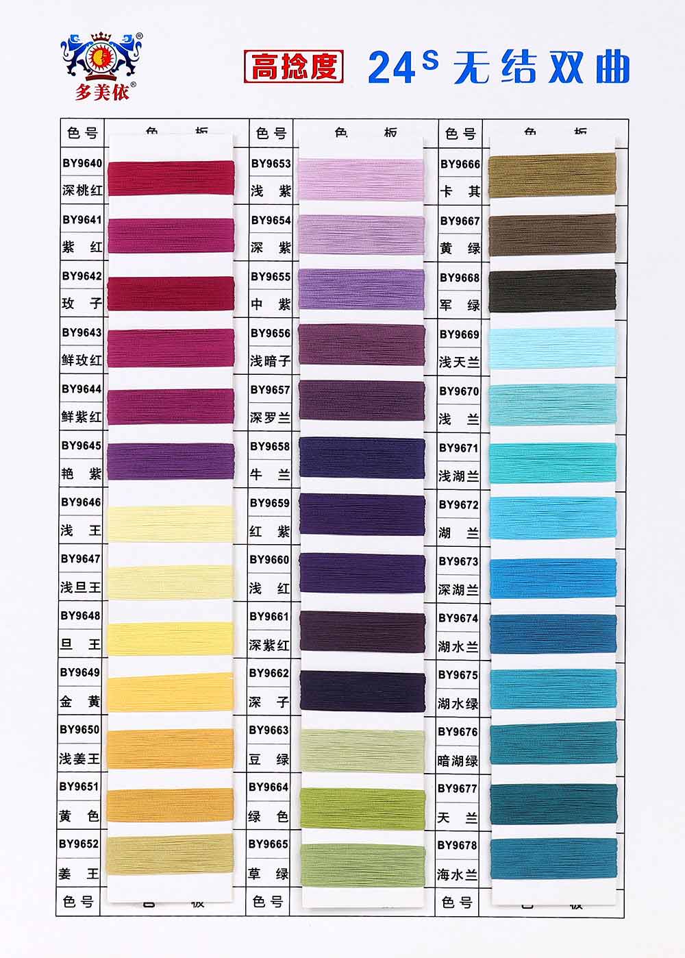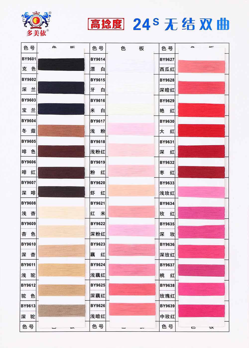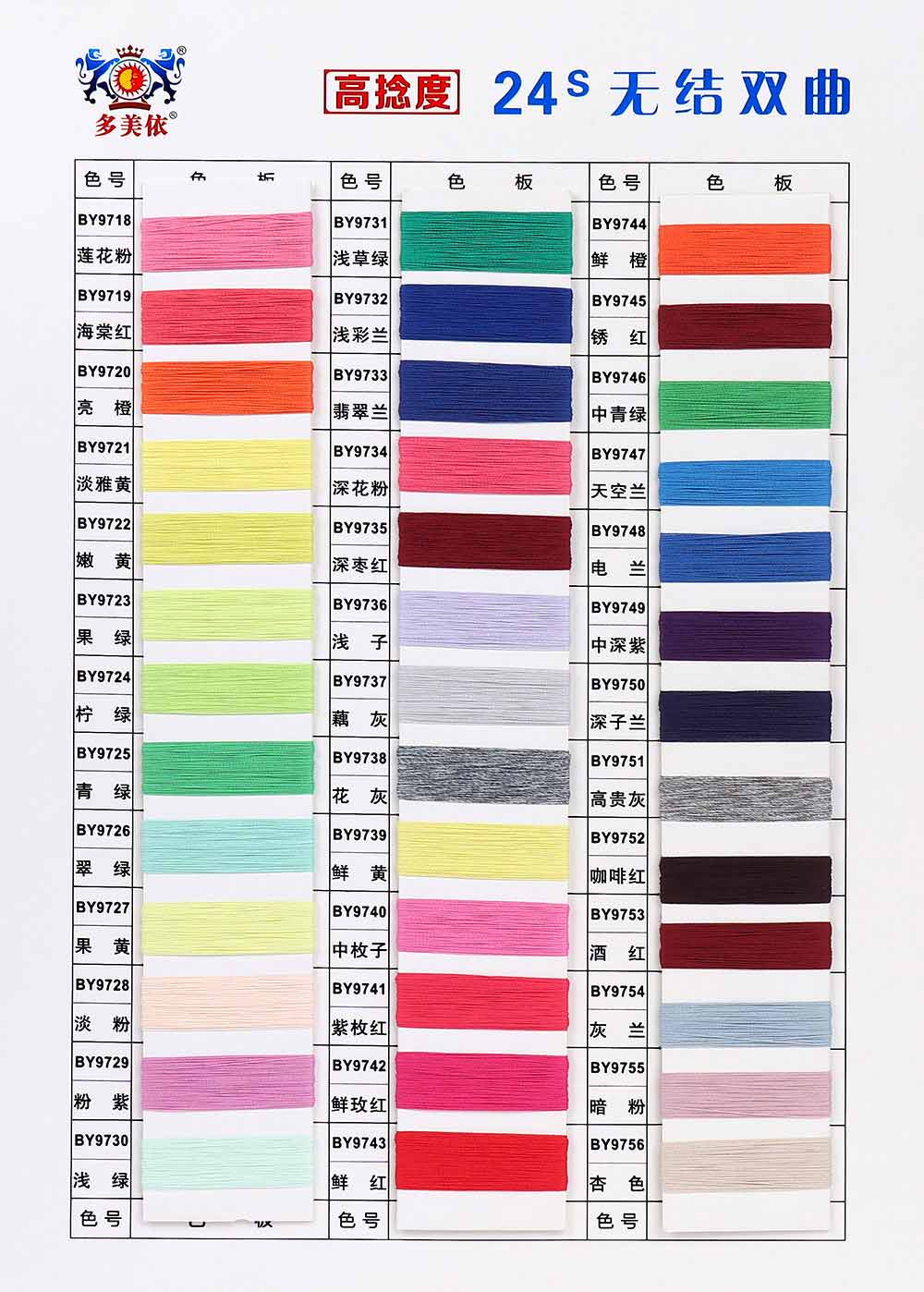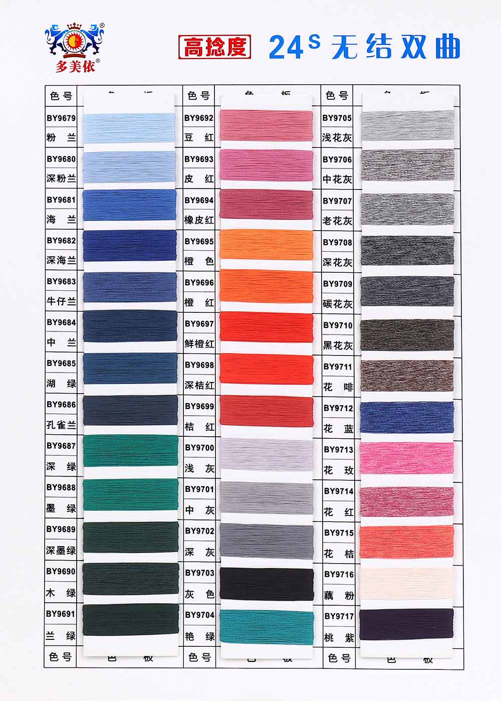 高弹包芯纱、兔绒包芯纱、羊毛包芯纱、竹节包芯纱、莫代尔包芯纱、兔毛包芯纱、高捻抗起球包芯纱、小兔包芯纱、抗起球爱尔兰包芯纱、腈纶包芯纱、晴棉包芯纱、闪光包芯纱、有色七彩包芯纱、安哥拉纤绒纱、雪尼尔亮光丝绒(4.5、6、10、12、15、18支等系列)、三合一天丝绒、有色双曲、有色冰曲、二经一纬(带子纱)、8支雪龙纱、蜈蚣纱(15、18支等)、仿貂(0.5、0.7、1.3、2.0公分等系列)、水晶貂(0.5、0.9公分等系列)、兰精天丝。