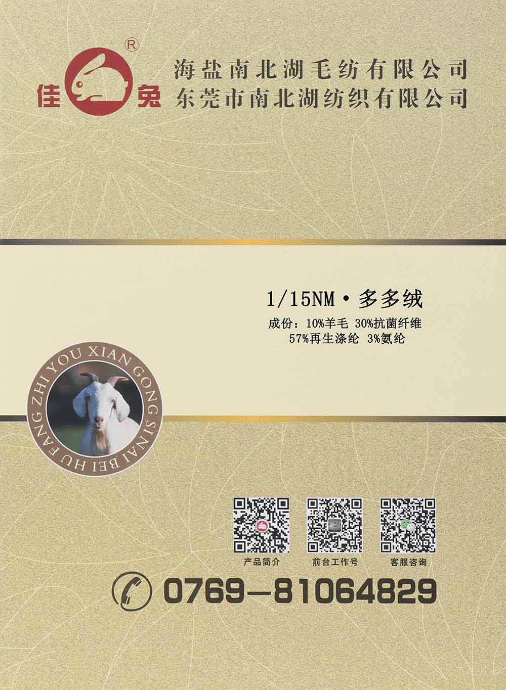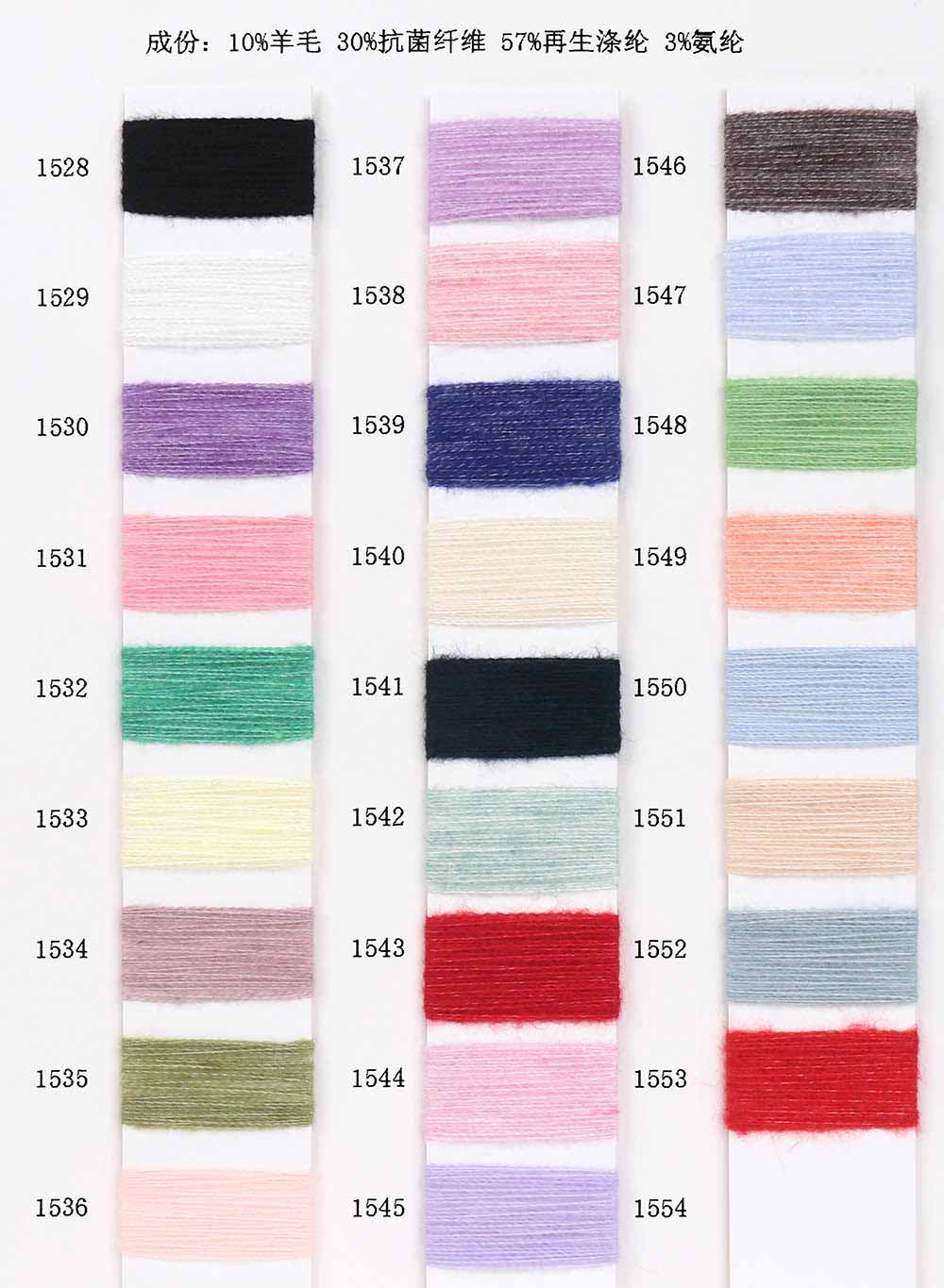 10%羊毛Wool 30%抗菌纤维Antibacterial fiber 57%再生涤纶Polyester 3%氨纶Spandex