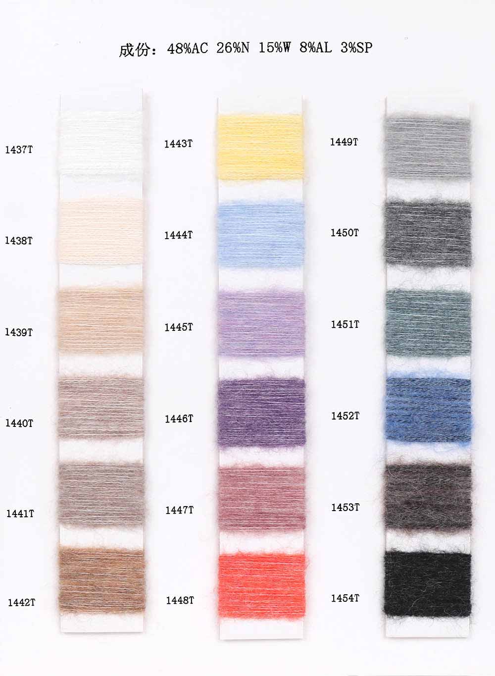 48%腈纶Acrylic 26%尼龙Nylon 15%羊毛Wool 8%羊驼毛Alpaca 3%氨纶Spandex