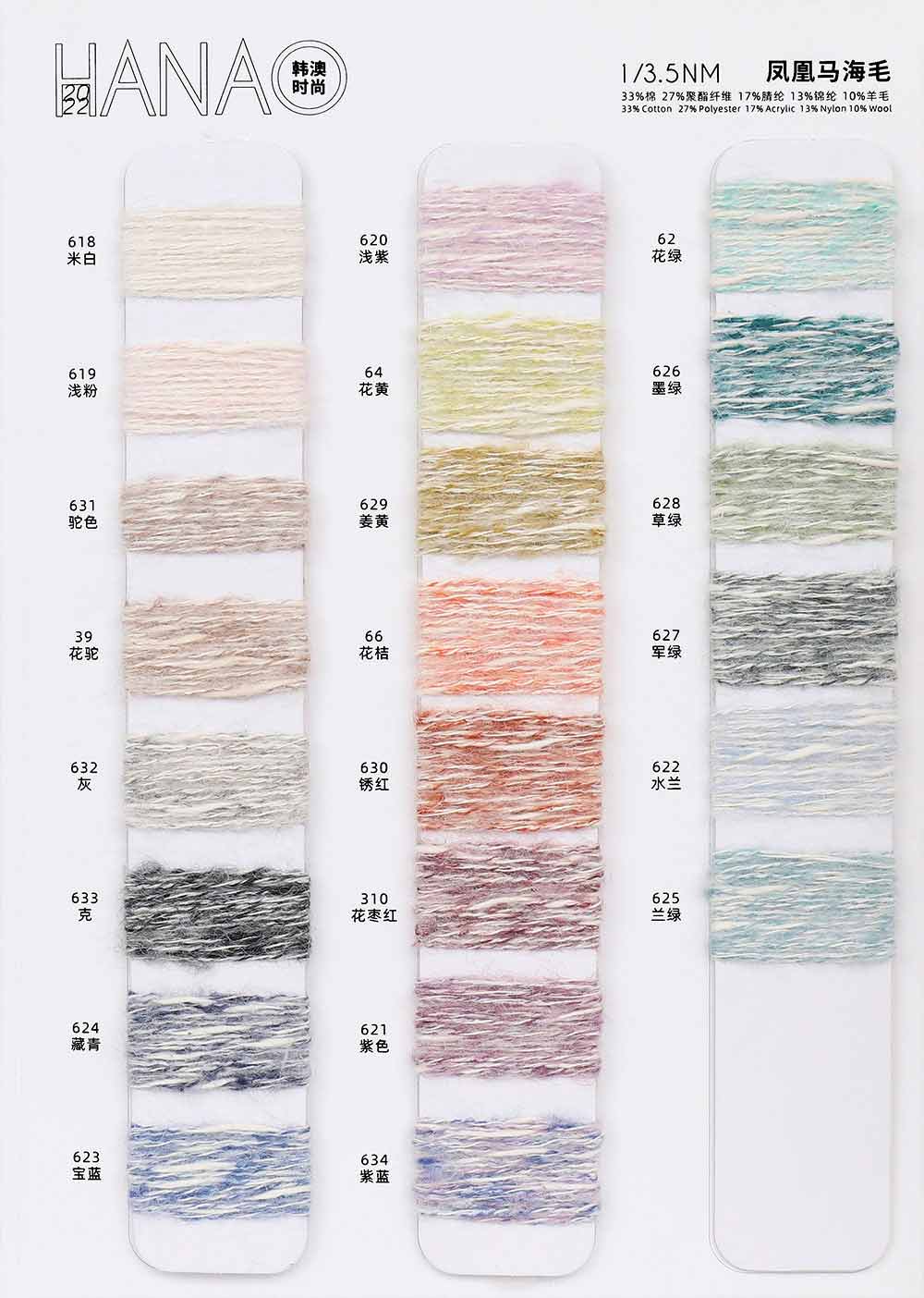 10%羊毛Wool 13%锦纶Nylon 17%腈纶Acrylic 33%棉Cotton 27%聚酯纤维Polyester