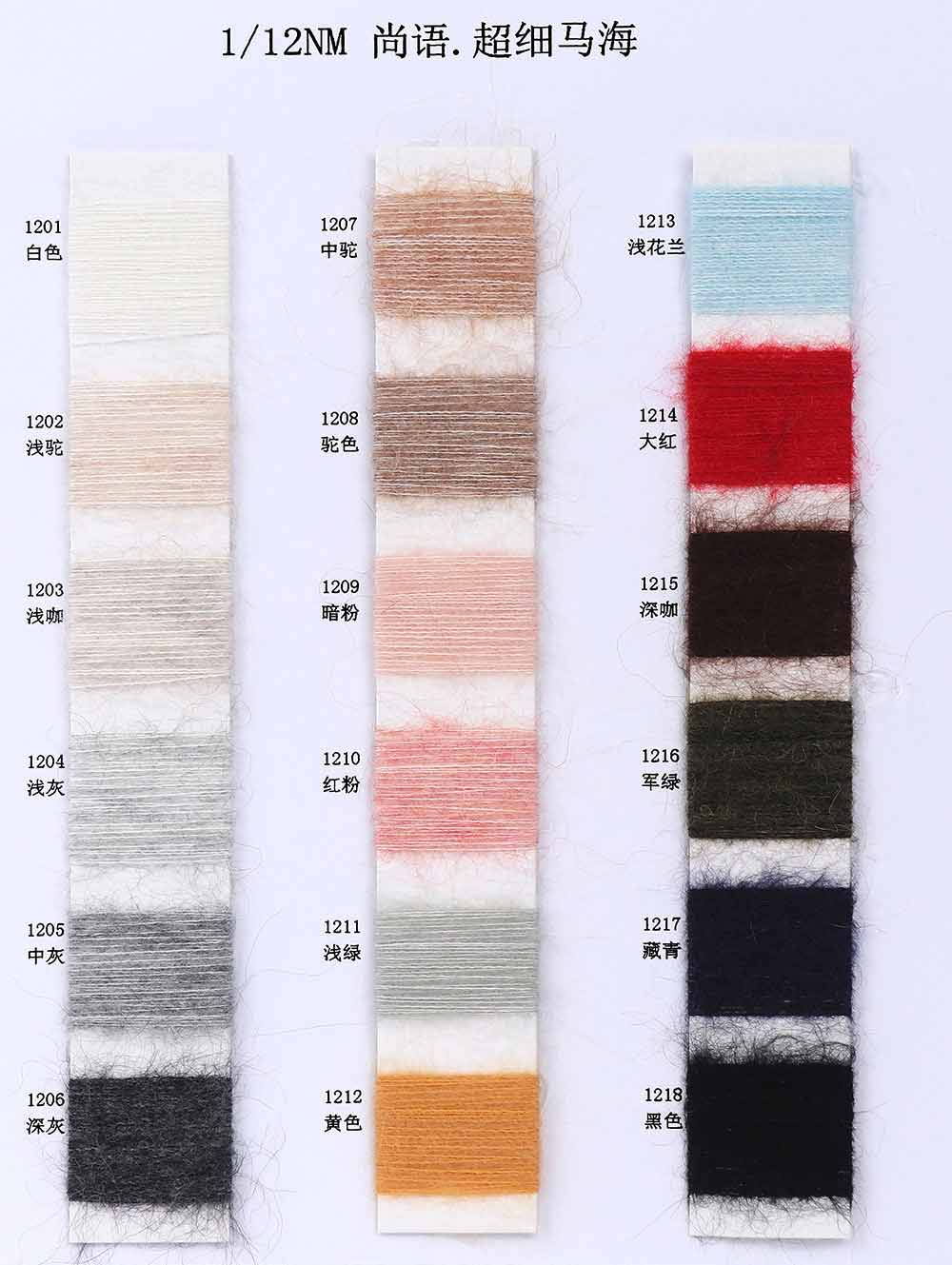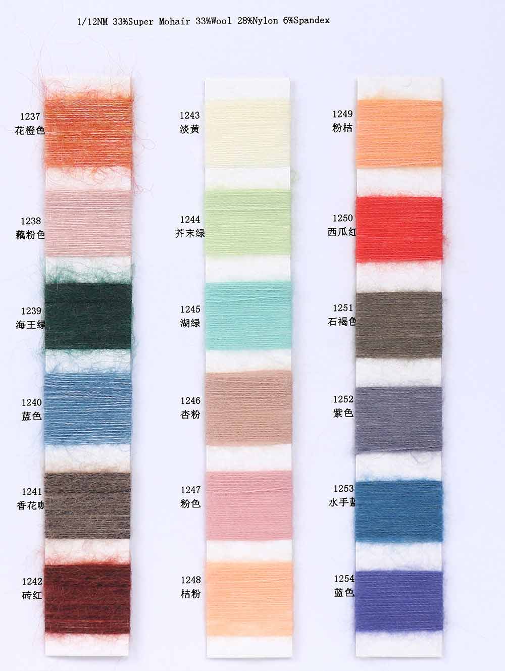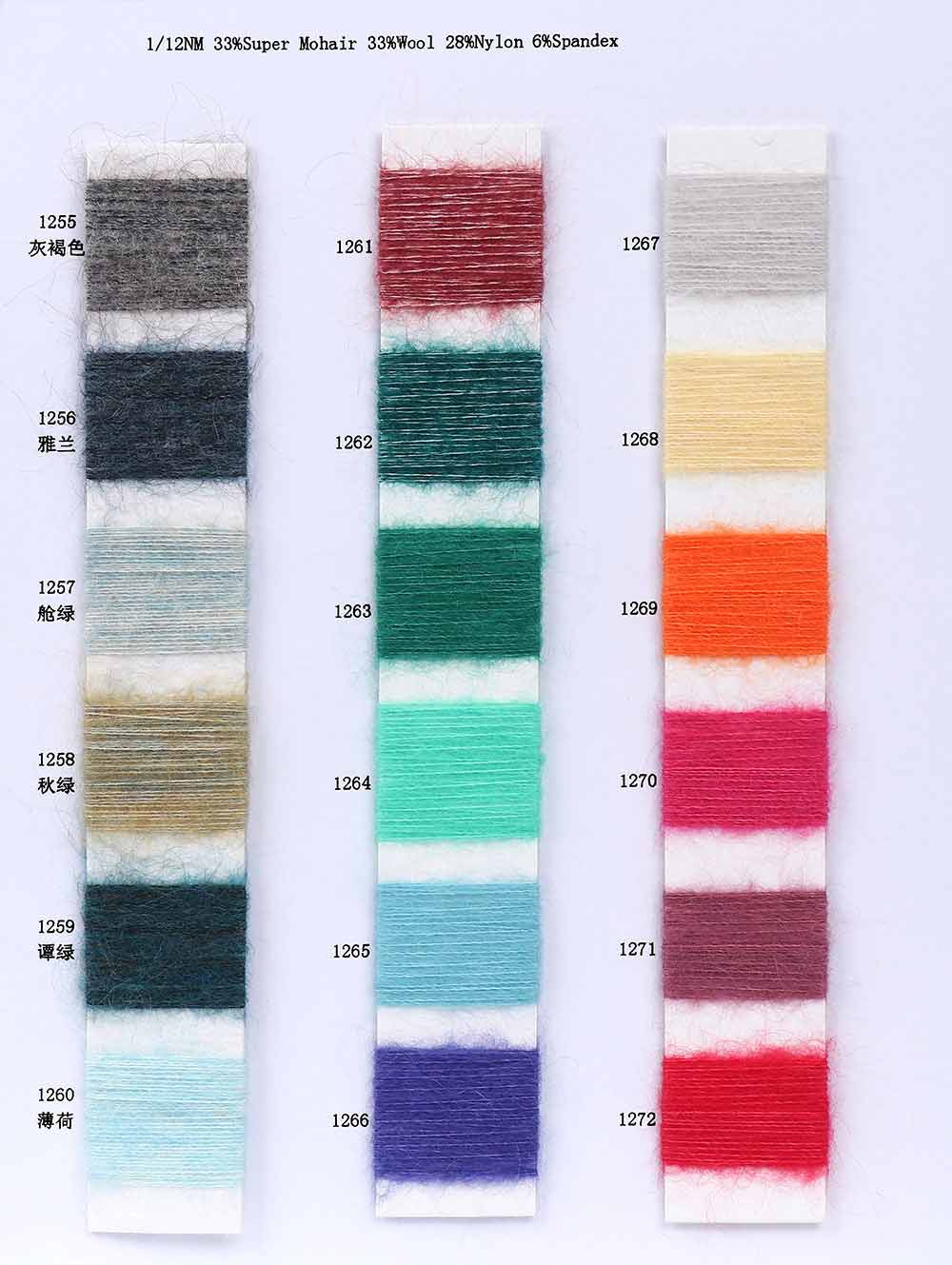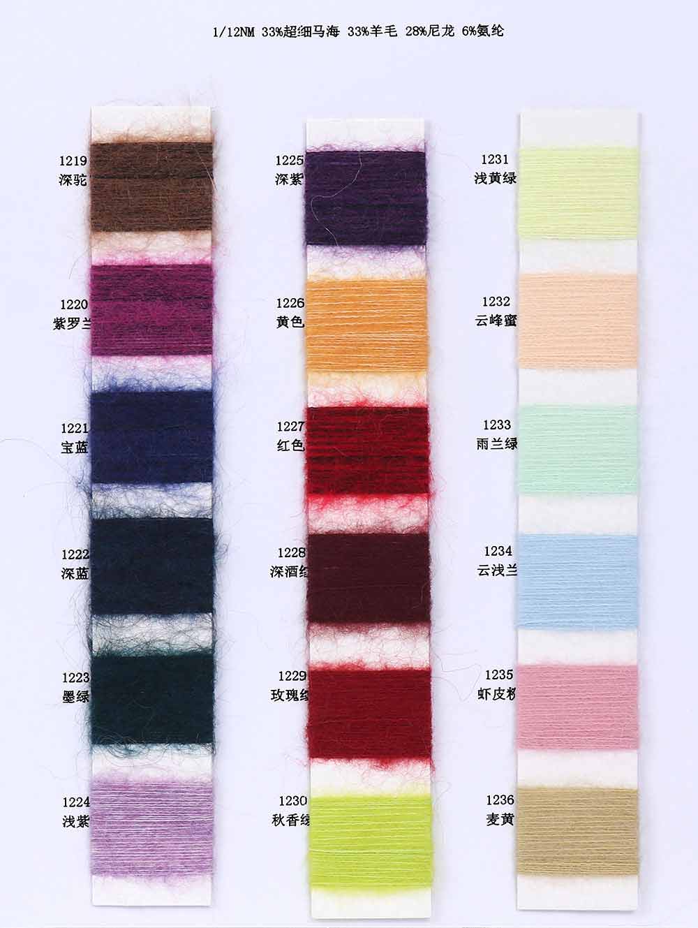33%超细马海毛Super Mohair 33%羊毛Wool 28%尼龙Nylon 6%氨纶Spandex